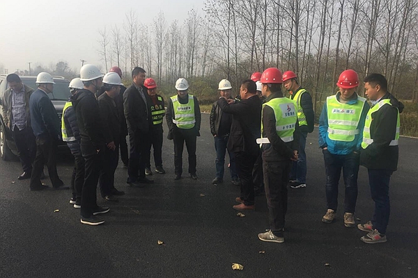 11月21日上午,合寧高速改擴(kuò)建項(xiàng)目辦副主任劉祥勝帶領(lǐng)各監(jiān)理、施工單位到公司承建的合寧05標(biāo)觀摩交流瀝青上面層施工技術(shù)。