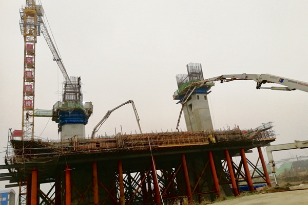 12月1日下午,裕溪河特大橋東岸13號主墩開始0#塊混凝土澆筑施工。