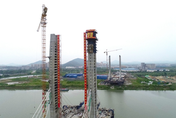 亞父路裕溪河特大橋主橋塔柱全部封頂