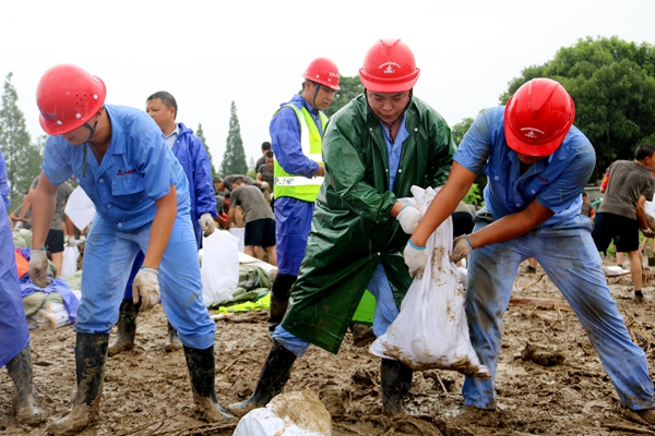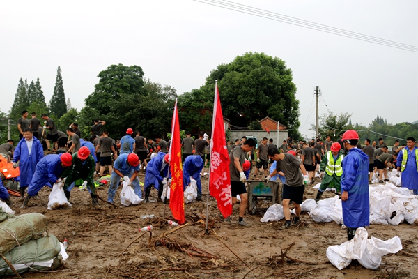 7月23日,路面公司組建的防汛抗洪搶險救援隊在完成同大圩保衛(wèi)戰(zhàn)后,又快速集結(jié)隊伍,冒雨逆行,轉(zhuǎn)戰(zhàn)增援紫荊村小南河抗洪搶險,和正在參與抗洪搶險的解放軍官兵共同投入戰(zhàn)斗。連續(xù)6小時的冒雨奮戰(zhàn),共填裝轉(zhuǎn)運沙袋5000多只,成功完成強固堤壩任務,比預定時間提前了近兩小時。