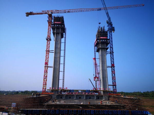 在主橋塔柱施工過(guò)程中,項(xiàng)目部始終堅(jiān)持任務(wù)不減、目標(biāo)不變、標(biāo)準(zhǔn)不降的總基調(diào),堅(jiān)持質(zhì)量與安全齊抓,內(nèi)業(yè)與外業(yè)并重的工作原則,相繼克服了超高作業(yè)安全隱患大、交叉施工環(huán)境復(fù)雜等一系列難題。主橋塔柱順利封頂標(biāo)志著大橋塔柱主體工程結(jié)束,全面步入斜拉索施工階段。