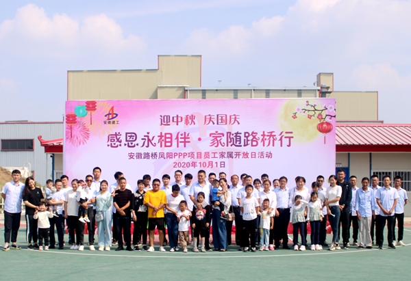 今年的中秋喜逢國慶,家與國撞了滿懷。在舉國歡慶、萬家團圓的欣喜時刻,仍有很多路橋人為了工程建設,舍小家、為大家,堅守崗位、奮戰(zhàn)一線。為進一步深化公司“家文化”建設,10月1日,鳳陽PPP項目黨支部精心組織開展了“感恩永相伴•家隨路橋行”員工家屬日活動,20余名員工家屬受邀到項目部與家人團聚,共慶佳節(jié)。