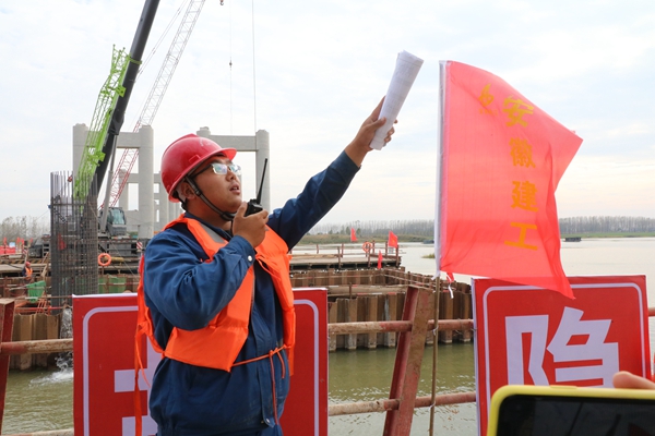 固蚌、蕪黃高速作為省委省政府規(guī)劃的“縣縣通高速”,將在2021年建成通車,這對于今年3月份項目才正式開工的全體建設(shè)者來說,無疑是個巨大挑戰(zhàn)。在淮河岸邊、澮河之上,青年黨員陸志康正在組織打樁機施工?!皾液犹卮髽蜷L2.6km,是安徽省首座組合梁系桿拱橋,引橋采用鋼板組合梁,建成后將成為澮河上的新地標,”他自信地說。不論是疫情防控后的復(fù)工復(fù)產(chǎn),還是抗洪期間,他都始終沖鋒在前,白天在一線蹲守,晚上研究解決問題的辦法。圓月初升,各個工位上的聚光燈,點燃寂靜夜空,將夜晚照得如同白晝明亮,陸志康乘著夜色仍在混凝土澆筑工點,忘記了時間,只為了一個目標,就是要把項目又好又快建成。