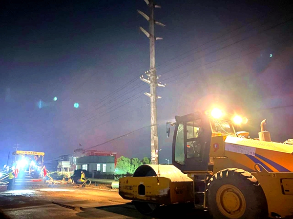 由于該項目施工區(qū)域位于交通干道,車輛、人員流動量大,道路兩旁住房、廠房密布,大規(guī)模作業(yè)無法實施。針對種種困難和壓力,項目部精心謀劃,組織精干力量,分重點、分區(qū)域、分節(jié)點,采用“插縫施工”思路,以點帶面,以面促片,順利完成路床交驗、路面水穩(wěn)試驗段鋪筑、污水管道施工和全線舊路面板破除等節(jié)點任務(wù)。