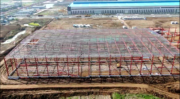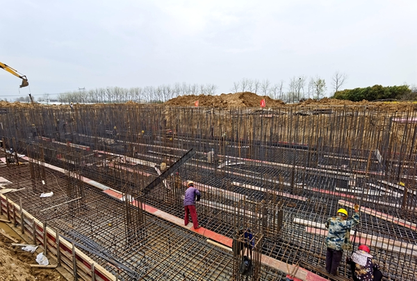 2021年1月4日,在基地藍圖繪就的基礎上,廠房和辦公生活設施項目部進場施工。他們克服了土地征收、連續(xù)多雨天氣、拆遷困難、樹木砍伐等不利因素,發(fā)揚“特別能吃苦、特別能戰(zhàn)斗”的企業(yè)作風,解決了一個又一個棘手的問題,加班加點推進基地基礎設施建設。截至3月底,吳山產業(yè)化基地項目3#管片生產車間地基基礎、短柱、框梁施工完成100%;3#管片生產車間鋼柱、鋼梁等主體結構安裝完成70%,拌合站主機、粉煤灰罐基礎完成100%。