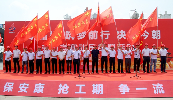 路面公司總經(jīng)理薛斌作動員講話,副總經(jīng)理陳智宣讀了勞動競賽活動方案,項目經(jīng)理代表、黨員代表、青年代表和施工班組代表分別作了表態(tài)發(fā)言?,F(xiàn)場還進行了“黨員先鋒隊”、“工人先鋒號”、“青年突擊隊”授旗。