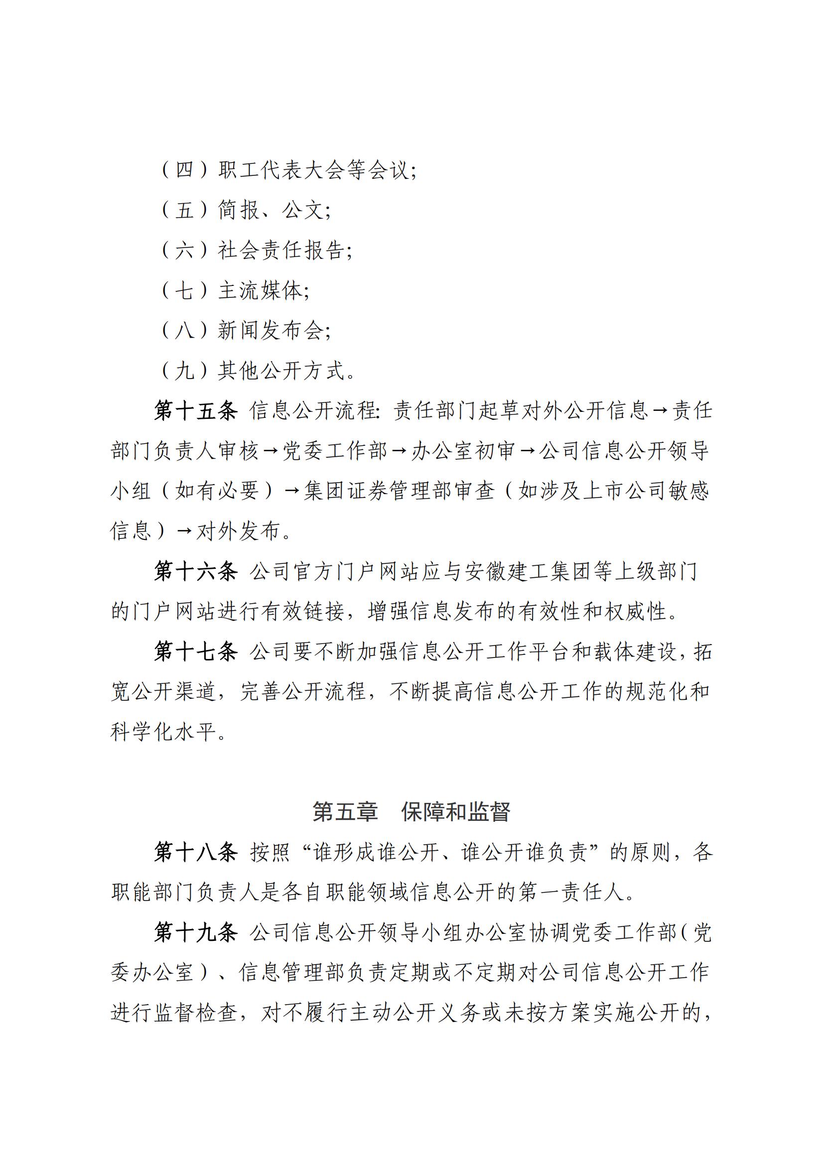 安徽建工公路橋梁建設(shè)集團(tuán)有限公司信息公開暫行管理辦法 發(fā)布時間:2022年11月20日 來源:安徽路橋公司 發(fā)布人:黨委工作部 作者:安徽路橋公司 瀏覽:8812次