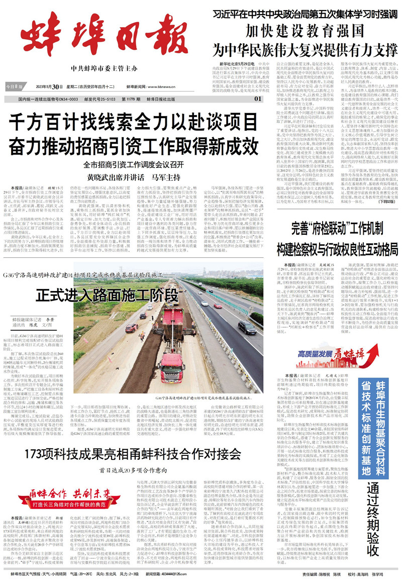 【名媒聚焦】蚌埠日報:G36寧洛高速明蚌改擴建01標項目順利完成水穩(wěn)底基層試驗段施工——正式進入路面施工新階段
