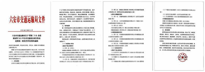 公司承建項(xiàng)目在六安市交通重點(diǎn)項(xiàng)目勞動(dòng)競(jìng)賽考評(píng)中取得佳績(jī)