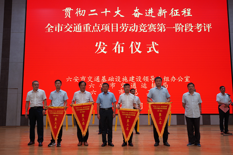 7月15日,在六安市交通運(yùn)輸基礎(chǔ)設(shè)施領(lǐng)導(dǎo)小組辦公室、市交通運(yùn)輸局、市總工會(huì)聯(lián)合舉行的“貫徹二十大 奮進(jìn)新征程”全市交通重點(diǎn)項(xiàng)目勞動(dòng)競(jìng)賽第一階段考評(píng)發(fā)布儀式上,公司承建的六安G237一期項(xiàng)目榮獲國(guó)省干線(xiàn)公路項(xiàng)目第一名、霍邱縣彭塔至潘集段建設(shè)工程榮獲第三名。