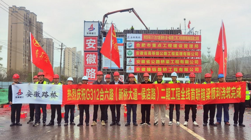 項目堅持以實干出成績,向時間要效益,以“開局即決戰(zhàn),起步即沖刺”的姿態(tài),跑出施工加速度。首根樁基開鉆、首根墩柱澆筑、首座承臺澆筑、首聯(lián)現(xiàn)澆箱梁澆筑……項目工期以及形象進度始終領跑全線。建設過程中,合肥新聞聯(lián)播以《安徽路橋G312:無懼“烤”驗 用汗水筑就城市之美》為題關注項目“高溫下的堅守”,中安在線、合肥日報、合肥晚報等主流媒體也高頻聚焦項目建設進展。