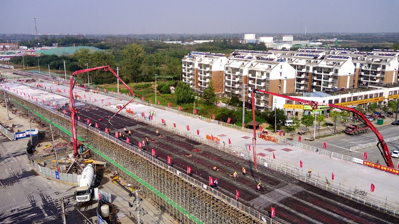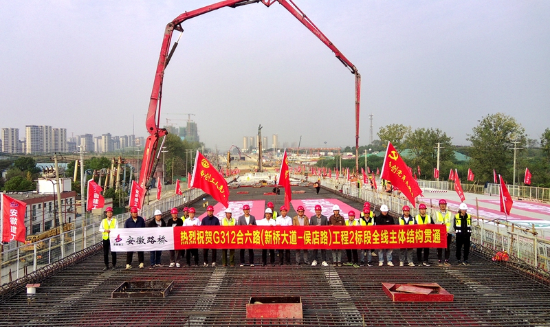 10月14日上午,G312合六路2標(biāo)項(xiàng)目“百日攻堅(jiān)大會(huì)戰(zhàn)”專項(xiàng)競賽傳來捷報(bào),伴隨著小蜀山西路上跨橋最后一聯(lián)現(xiàn)澆箱梁頂板順利澆筑,項(xiàng)目主線順利實(shí)現(xiàn)貫通。