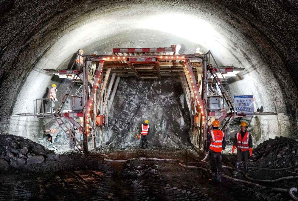 當(dāng)天清晨,薄霧如輕紗般籠罩著大地,江梓山山腰的隧道口處,已是一片熱火朝天的繁忙景象。巨大的機(jī)械臂在晨光中揮舞,在施工現(xiàn)場劃出一道道剛勁有力的弧線。工人們身著醒目的安全服,手持風(fēng)槍鉆,熟練而專注地操作著。隨著爆破孔眼逐個(gè)成孔以及炸藥裝填工作穩(wěn)步推進(jìn),爆破前的準(zhǔn)備工作逐漸進(jìn)入尾聲。
