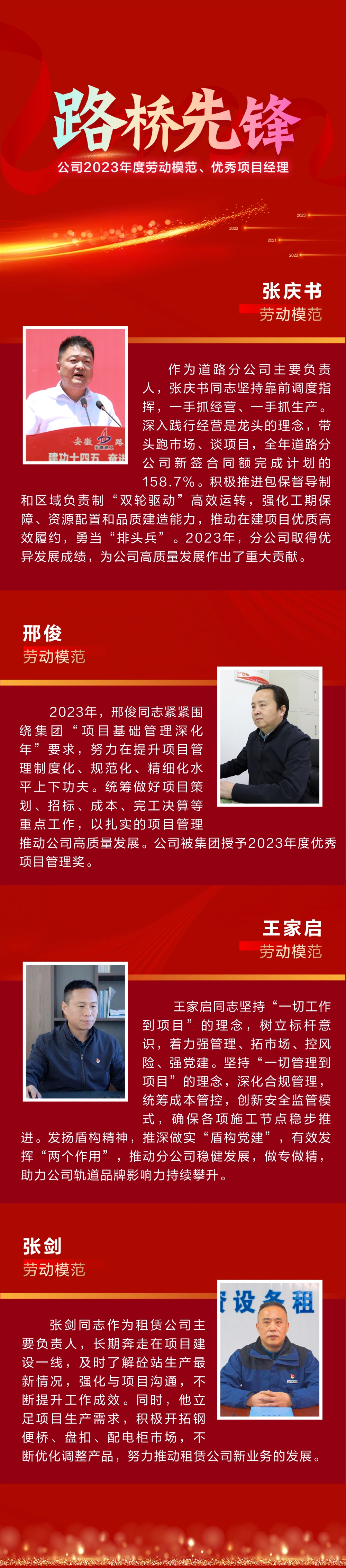 【路橋先鋒】公司2023年度勞動(dòng)模范、優(yōu)秀項(xiàng)目經(jīng)理風(fēng)采展示 發(fā)布時(shí)間:2024年03月18日 來(lái)源:黨委組織部(人力資源部、黨委宣傳部)、所屬各單位 發(fā)布人:黨委組織部(人力資源部、黨委宣傳部) 作者: 瀏覽:2479次