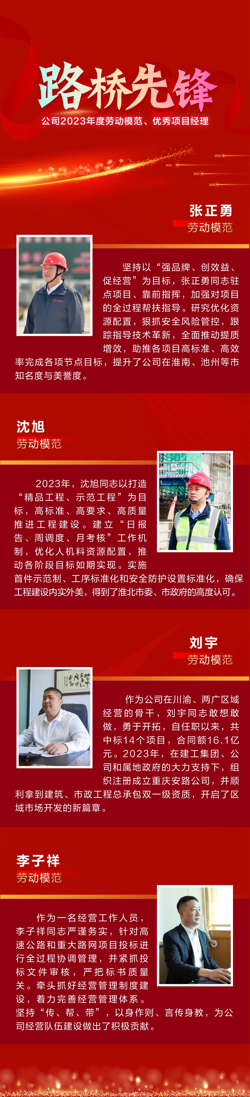 【路橋先鋒】公司2023年度勞動(dòng)模范、優(yōu)秀項(xiàng)目經(jīng)理風(fēng)采展示② 發(fā)布時(shí)間:2024年03月19日 來(lái)源:黨委組織部(人力資源部、黨委宣傳部)、所屬各單位 發(fā)布人:黨委組織部(人力資源部、黨委宣傳部) 作者: 瀏覽:2445次