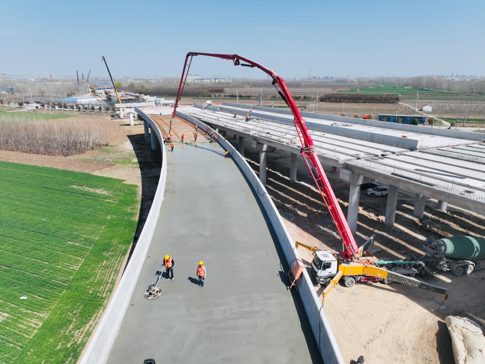 “節(jié)后復(fù)工以來,我們搶抓春季黃金施工期,科學(xué)統(tǒng)籌工程任務(wù),優(yōu)化生產(chǎn)資源配置,在確保安全和質(zhì)量的前提下,加快推進(jìn)工程進(jìn)度?!卑不章窐蛐旎锤犯咚伲ɑ幢倍危┞坊访鏄?biāo)黨支部副書記李天天說,今年一季度,項(xiàng)目組織600余名建設(shè)者、280余臺(tái)機(jī)械設(shè)備投入施工一線,累計(jì)完成混凝土澆筑2.8587萬立方米,澆筑樁基105根,架設(shè)鋼箱梁48節(jié)段,沱河特大橋完成懸臂澆筑施工12塊,完成產(chǎn)值1.4135億元。