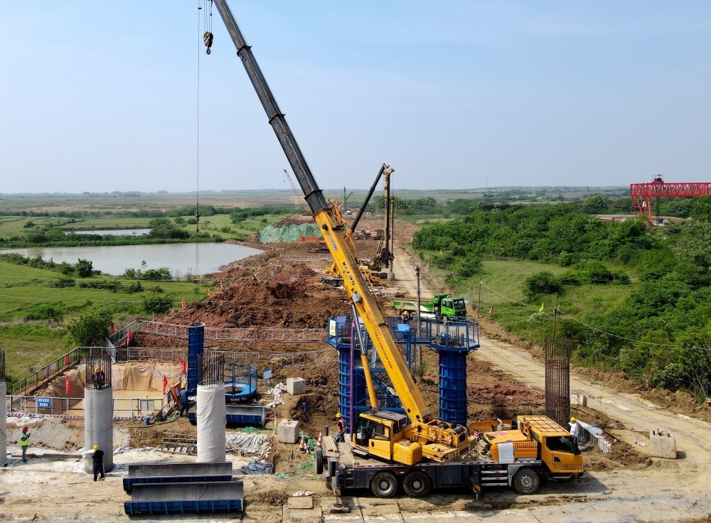 蕪湖正值梅雨季節(jié),面對(duì)青弋江日漸上漲的水情和項(xiàng)目趕在汛期高峰期到來(lái)前完成主墩出水的任務(wù),S334峨山路東延伸新建二期工程項(xiàng)目全體職工和參建班組堅(jiān)守在施工現(xiàn)場(chǎng)第一線,持續(xù)高效推動(dòng)項(xiàng)目建設(shè)。