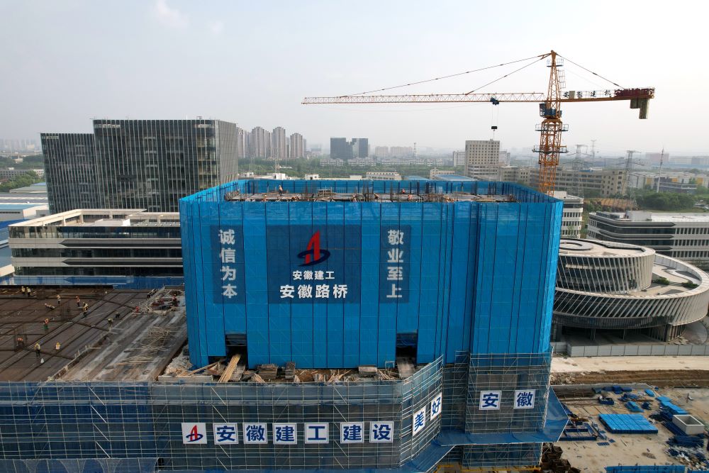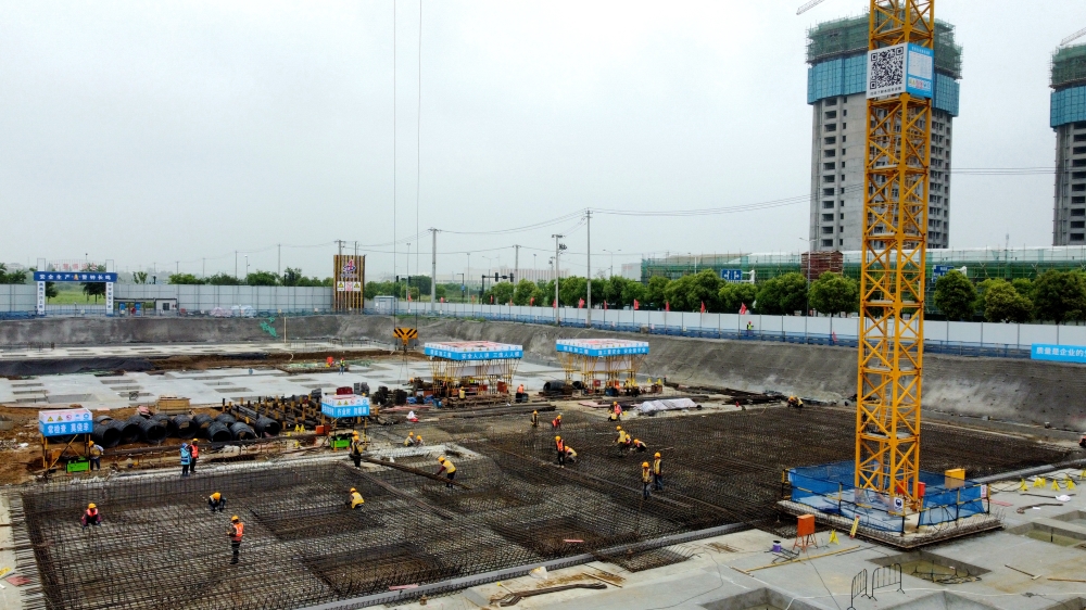 合肥新橋國(guó)際機(jī)場(chǎng)綜合交通中心項(xiàng)目施工現(xiàn)場(chǎng),50余名管理人員、700余名工人、27臺(tái)各類(lèi)施工機(jī)械緊密配合,全力推進(jìn)項(xiàng)目合新六城際鐵路先行工程底板及交通中心負(fù)一層頂板施工,同時(shí)搶抓完成地鐵S1線非影響區(qū)最后一塊頂板。