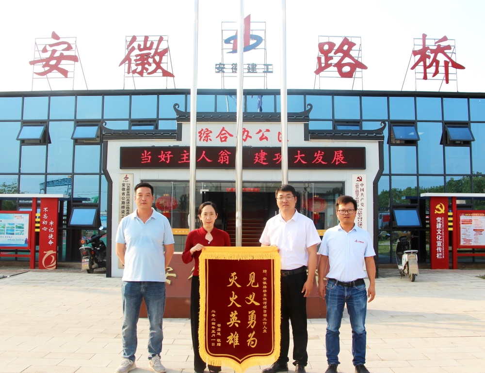 5月6日,一面繡有“滅火英雄,見義勇為”的鮮紅錦旗被鄭重地送到安徽路橋合周高速4標(biāo)東淝河大橋項(xiàng)目部,這是當(dāng)?shù)卮迕駥?duì)項(xiàng)目部英勇救火的深深謝意與高度贊揚(yáng)。