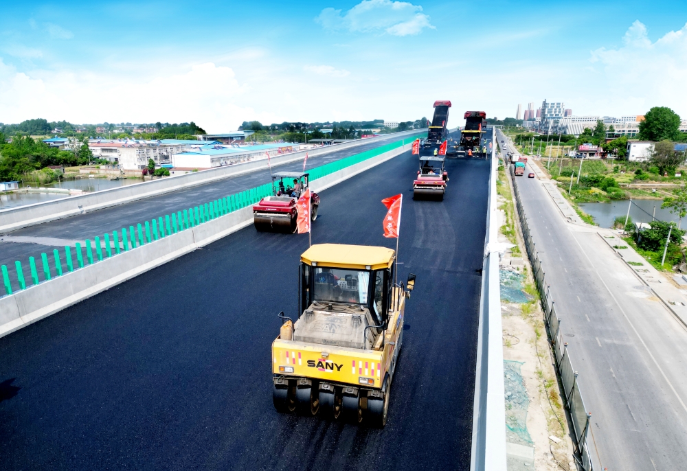 西灣路主線高架橋全長1024米,是項目的控制性節(jié)點(diǎn)工程。為確保瀝青中面層攤鋪順利進(jìn)行,項目部從技術(shù)方案、現(xiàn)場管控、施工時間等方面科學(xué)制定施工方案,并組織技術(shù)員、安全員等全程旁站監(jiān)督,確保拌合、運(yùn)輸、攤鋪、檢測各項工序整體協(xié)調(diào)有序。