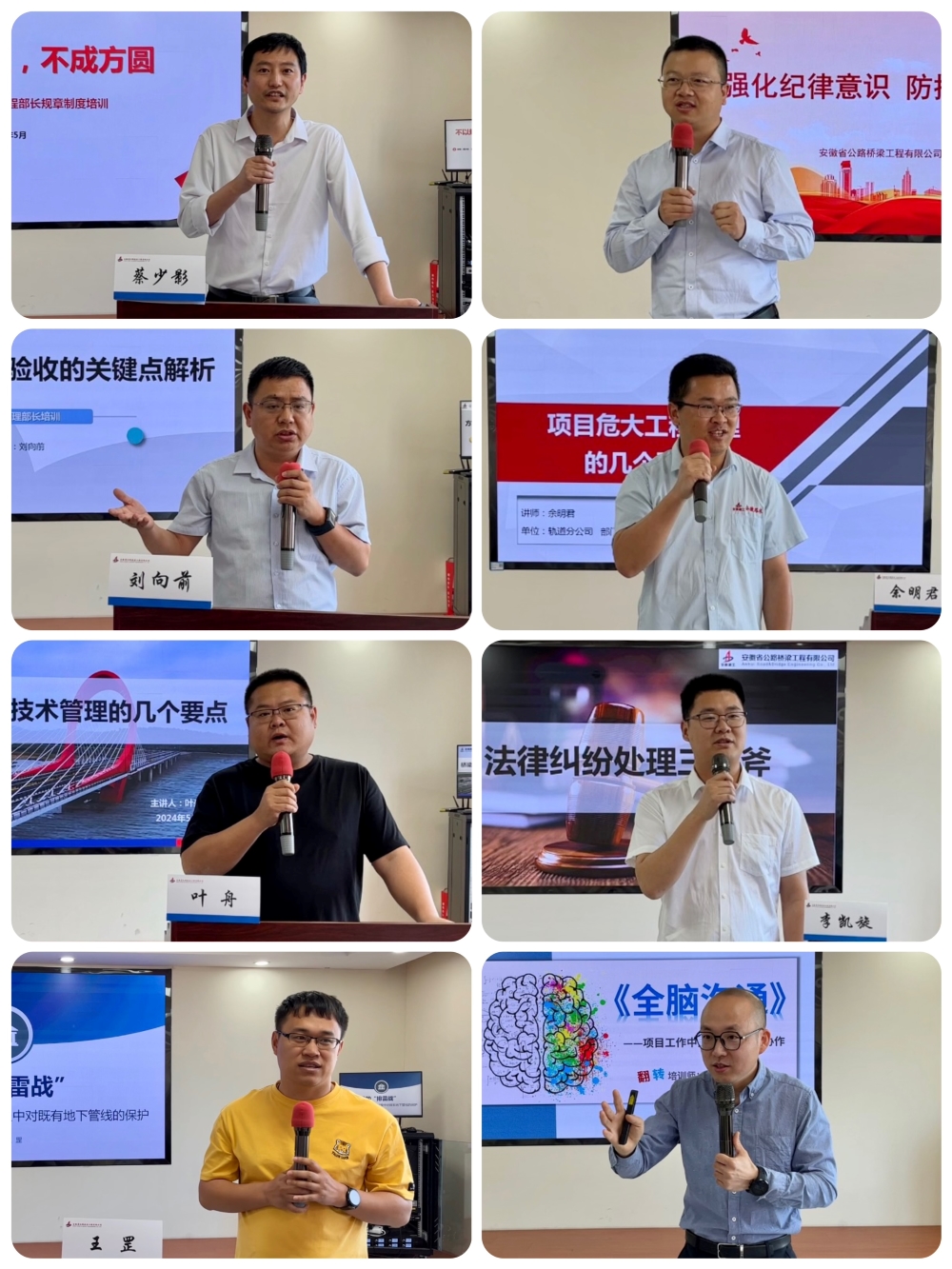 培訓采用新老講師結合的形式,內容涉及公司最新規(guī)章制度解析、方案編制和檢查驗收、橋梁工程施工技術、地下管線保護、項目危大工程、廉潔教育、法律糾紛處理以及通用管理課程等。