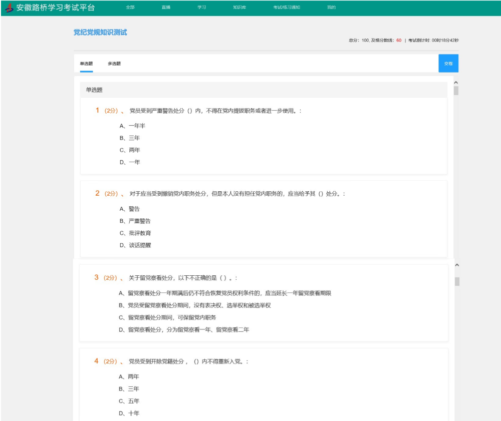 (公司信息化線上“黨紀(jì)黨規(guī)知識(shí)測試”)