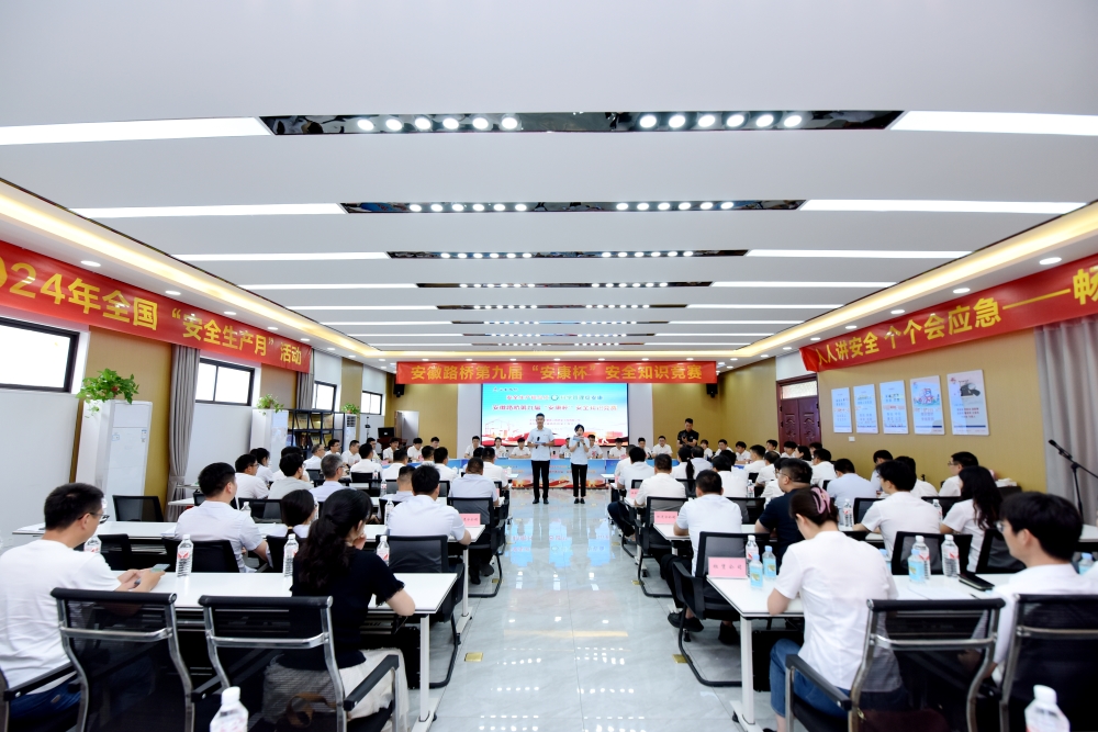 6月4日下午,安徽路橋第九屆“安康杯”安全知識(shí)競(jìng)賽成功舉辦。此次競(jìng)賽以“安全生產(chǎn)提品質(zhì) 科學(xué)管理促安康”為主題,旨在深化安全生產(chǎn)理念,提升員工安全素質(zhì)。安徽省建設(shè)建材工會(huì)(省住建廳文明辦)四級(jí)調(diào)研員邱亮出席活動(dòng)并作點(diǎn)評(píng)講話(huà),安徽省建設(shè)工程質(zhì)量與安全協(xié)會(huì)副秘書(shū)長(zhǎng)趙永生出席活動(dòng),公司黨委書(shū)記、董事長(zhǎng)錢(qián)申春致辭。建工控股工程管理部(安全監(jiān)察局)副部長(zhǎng)胡曉東,公司領(lǐng)導(dǎo)韋秀剛、石懷遠(yuǎn)及所屬各單位有關(guān)負(fù)責(zé)同志、職工代表共計(jì)80余人現(xiàn)場(chǎng)觀(guān)看比賽。