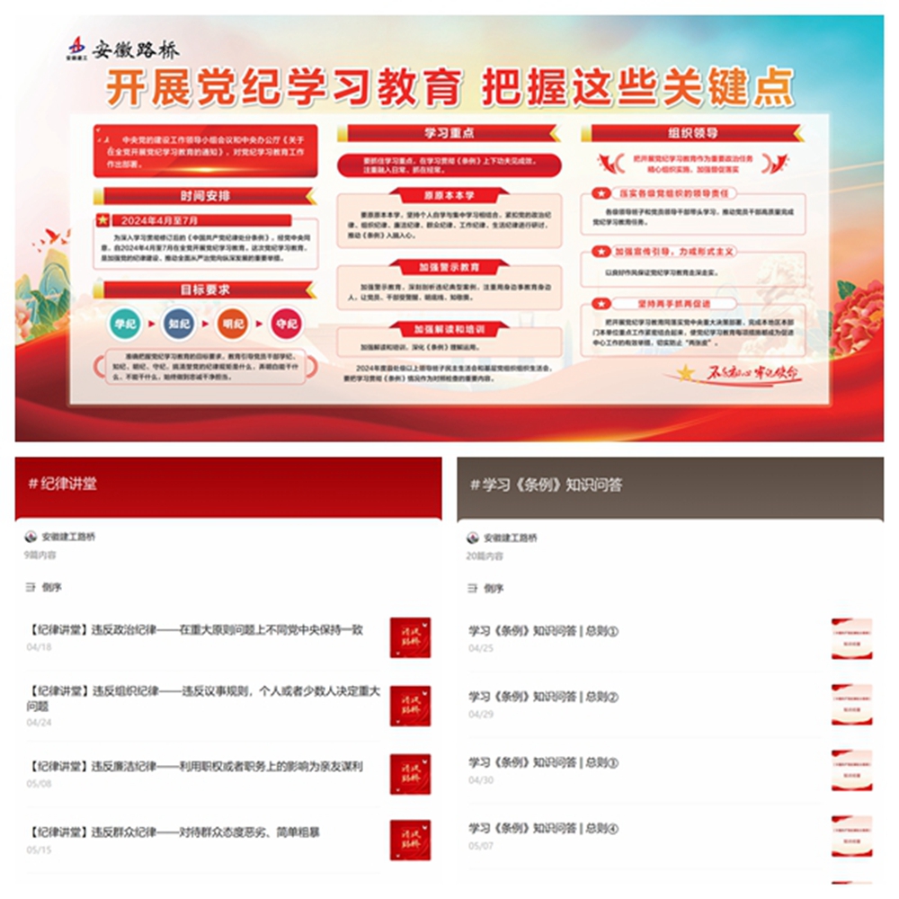 黨紀(jì)學(xué)習(xí)教育開展以來,公司黨委高度重視宣傳引導(dǎo)、氛圍提升。為擴大宣傳引導(dǎo)的接觸面,公司黨委統(tǒng)籌制定發(fā)布了黨紀(jì)學(xué)習(xí)教育展板。同時,立足“清風(fēng)路橋”建設(shè),加大宣傳力度,綜合運用官網(wǎng)、官微,設(shè)立“紀(jì)律講堂”“學(xué)習(xí)《條例》知識問答”等專欄,累計推出黨紀(jì)學(xué)習(xí)教育相關(guān)報道和學(xué)習(xí)材料80余篇次,做到“每日推送”。組織全體黨員職工參加公司內(nèi)網(wǎng)《條例》線上知識測試,以考助學(xué)、以訓(xùn)促學(xué),鞏固學(xué)習(xí)成果,檢驗學(xué)習(xí)成效,在全公司營造學(xué)紀(jì)、知紀(jì)、明紀(jì)、守紀(jì)的良好氛圍。各級黨組織通過“三會一課”等方式開展專題學(xué)習(xí)230余次,受教育黨員、職工累計超2500人次。