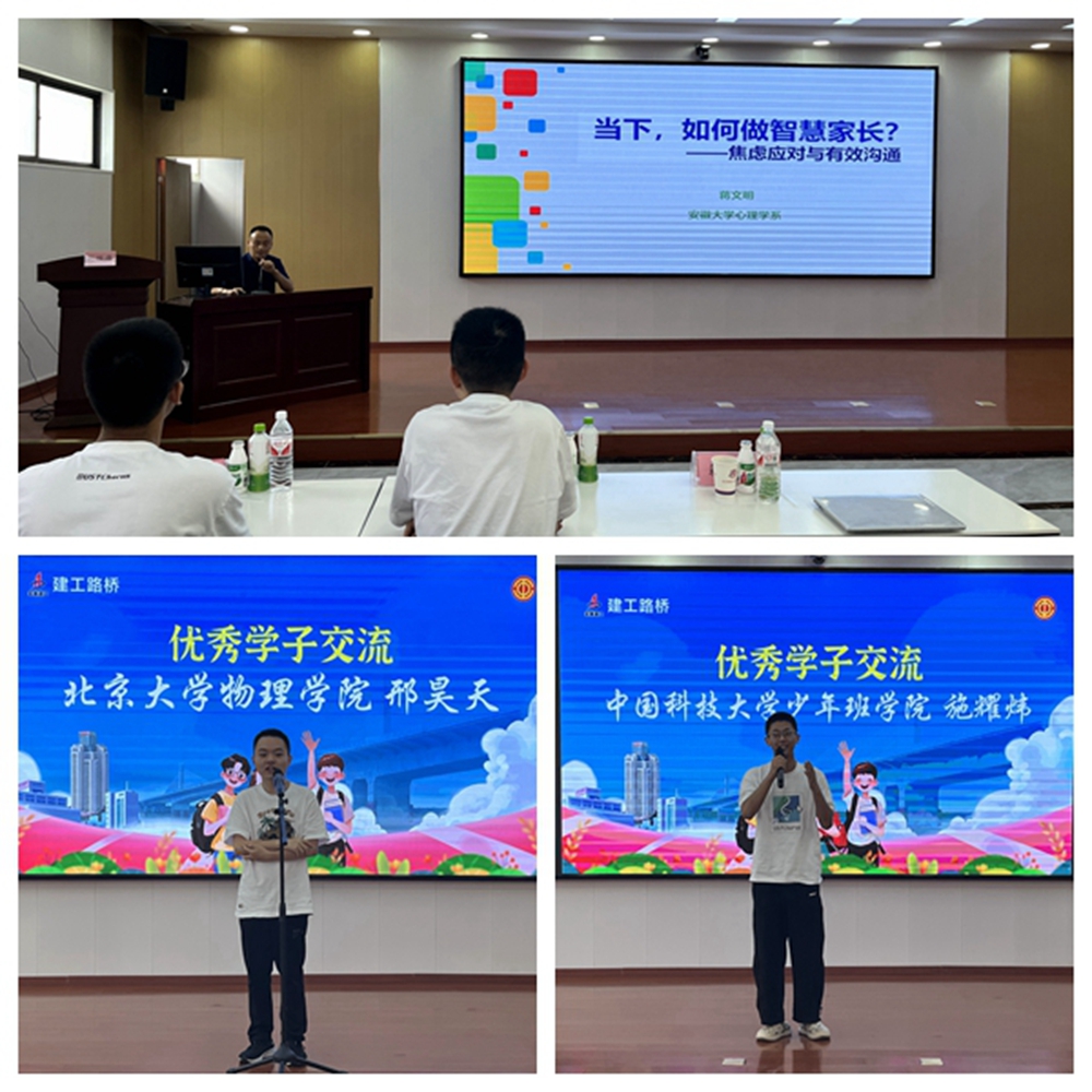 本次活動(dòng)開(kāi)展了親子寄語(yǔ)、愛(ài)心慰問(wèn),邀請(qǐng)了安徽大學(xué)心理學(xué)系教授開(kāi)展教育講座。同時(shí),還邀請(qǐng)了來(lái)自北京大學(xué)、中國(guó)科學(xué)技術(shù)大學(xué)等優(yōu)秀學(xué)生代表分享了學(xué)習(xí)經(jīng)驗(yàn)。