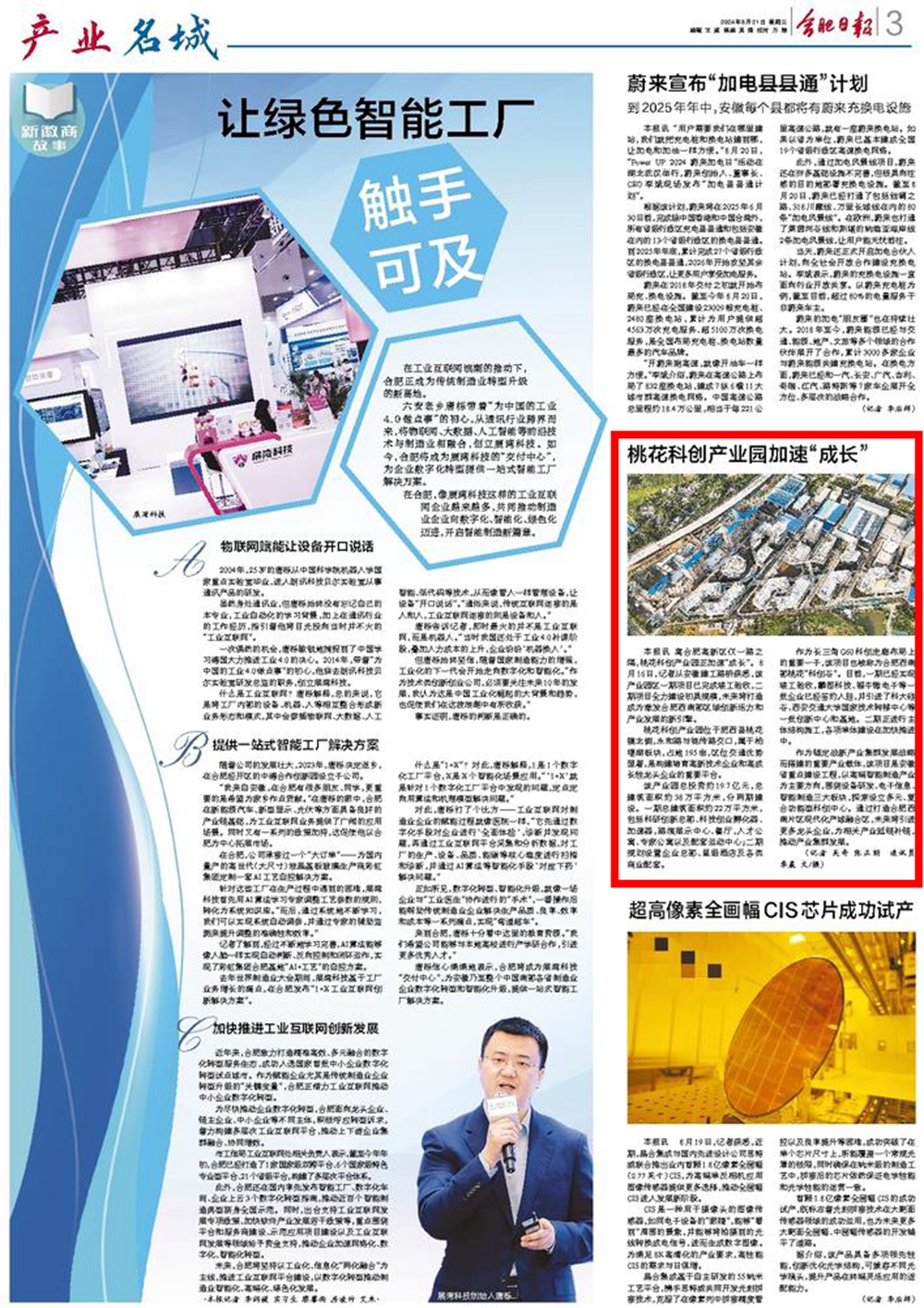 【名媒聚焦】合肥日?qǐng)?bào):桃花科創(chuàng)產(chǎn)業(yè)園加速“成長(zhǎng)”