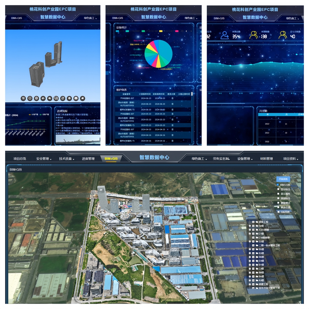 桃花科創(chuàng)園項(xiàng)目堅(jiān)持推廣應(yīng)用BIM和信息化數(shù)字技術(shù),在建設(shè)之初就定下實(shí)現(xiàn)“一網(wǎng)、一云、一模型”的建設(shè)目標(biāo)。即全過程依靠BIM模型搭載數(shù)據(jù)信息,實(shí)現(xiàn)園區(qū)運(yùn)行狀態(tài)立體監(jiān)測(cè)全聯(lián)網(wǎng),匯聚共享園區(qū)信息云資源,實(shí)現(xiàn)一模到底。基于“智慧工地”管理系統(tǒng),項(xiàng)目采取“監(jiān)控+BIM+GIS”可視化監(jiān)控,迅速、精準(zhǔn)地通過BIM模型中相應(yīng)位置監(jiān)控,檢查和定位現(xiàn)場(chǎng)違規(guī)作業(yè),并采用IP廣播鏈接進(jìn)行應(yīng)急指揮調(diào)度,結(jié)合AI監(jiān)控、智能安全帽等設(shè)備,實(shí)現(xiàn)違規(guī)行為自動(dòng)預(yù)警提醒,降低安全風(fēng)險(xiǎn)。項(xiàng)目相繼榮獲省住建廳“智慧工地”試點(diǎn)項(xiàng)目以及“合肥市智能建造試點(diǎn)工程”。