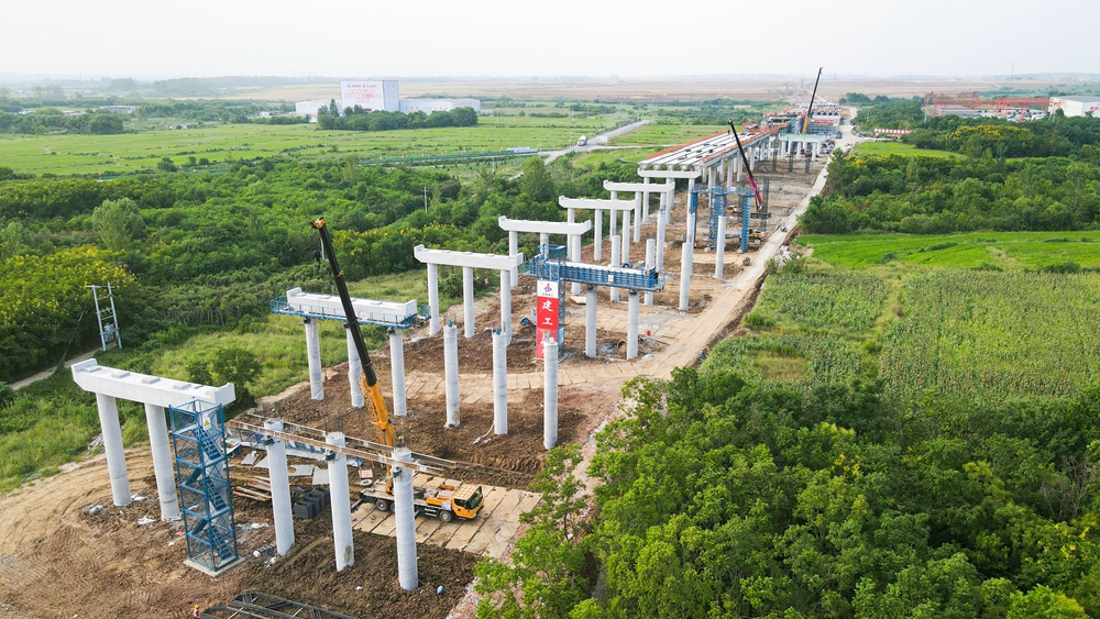 在合肥大外環(huán)西線,淮桐高速合肥段路基2標淠河總干渠大橋、引江濟淮特大橋引橋、大柏互通主線施工現(xiàn)場,300余名詮釋著勞模精神的施工建設(shè)者,沖刺工程進度,一心筑造回家的路。