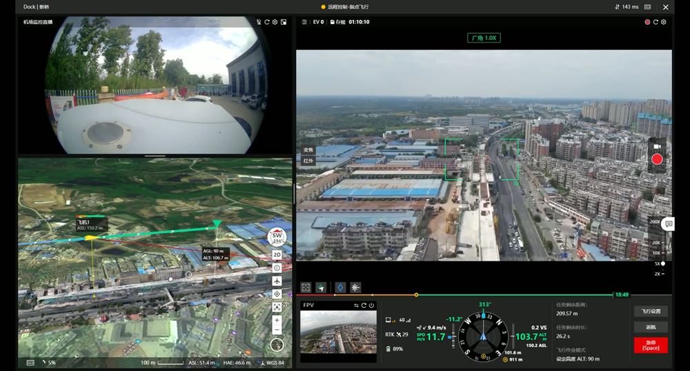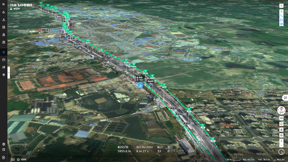 質(zhì)量是工程的生命線。無(wú)人機(jī)巡檢系統(tǒng),為質(zhì)量安全擦亮智慧“雙眼”?!拔覀儼褵o(wú)人機(jī)巡檢與GIS+BIM技術(shù)相結(jié)合,對(duì)項(xiàng)目全線每月更新GIS數(shù)據(jù),形成虛實(shí)互聯(lián)的電子沙盤,真實(shí)還原現(xiàn)場(chǎng)工程建設(shè)場(chǎng)景。”余明君介紹,操控人員僅需遠(yuǎn)程下達(dá)巡檢任務(wù),即可實(shí)現(xiàn)起飛、巡檢、降落、回收、充電、數(shù)據(jù)上傳等一系列自動(dòng)操作,同時(shí)集成測(cè)量分析、重要部位重點(diǎn)標(biāo)注等功能,自動(dòng)巡檢無(wú)人值守、自動(dòng)作業(yè),還支持夜間紅外巡邏,“方寸屏幕間即可窺見(jiàn)施工全線場(chǎng)景?!?/p>