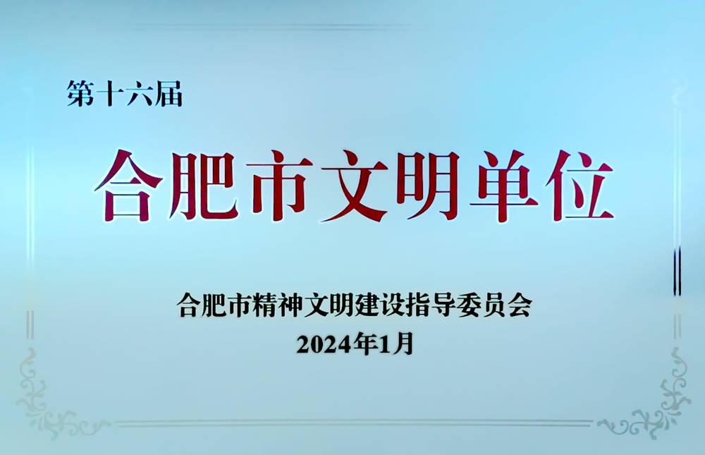 公司榮獲第十六屆合肥市文明單位稱號(hào)