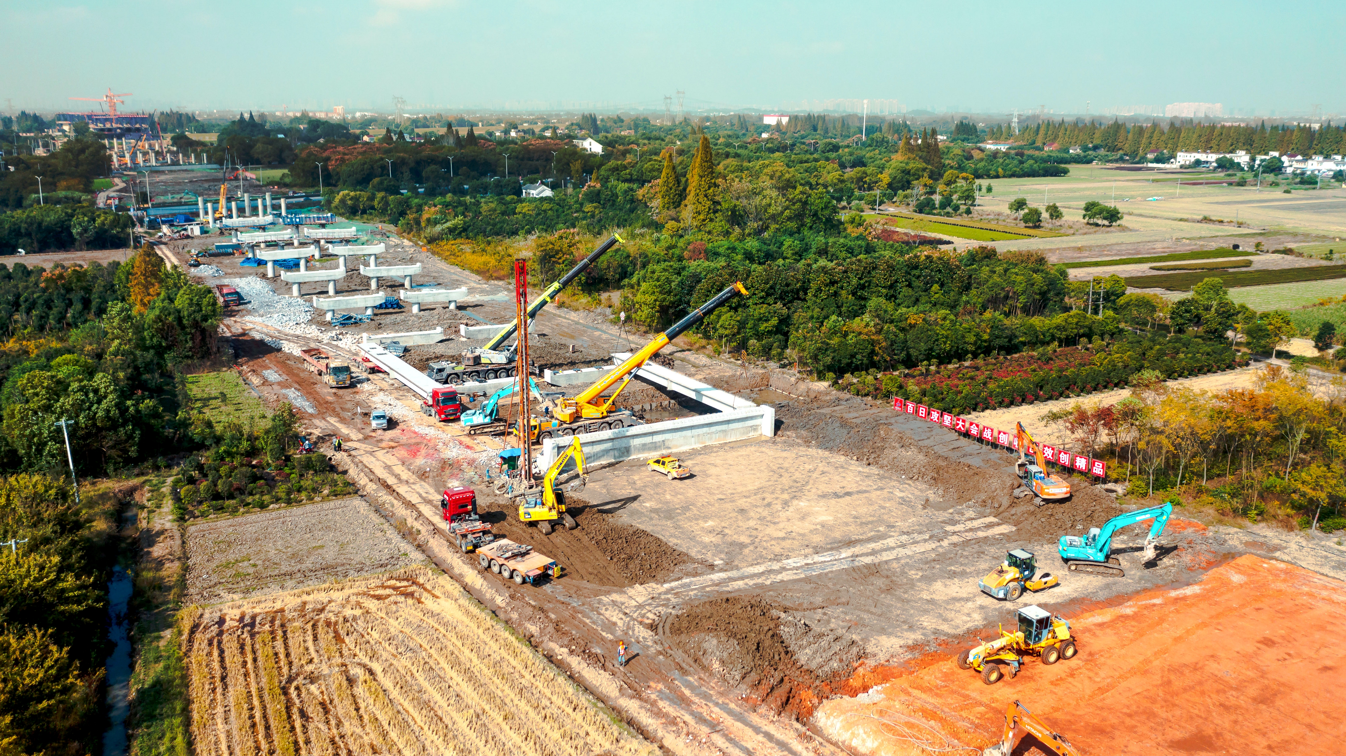 【路橋“競”行時】S334峨山路東延伸新建二期工程項目首片預(yù)制箱梁成功架設(shè)