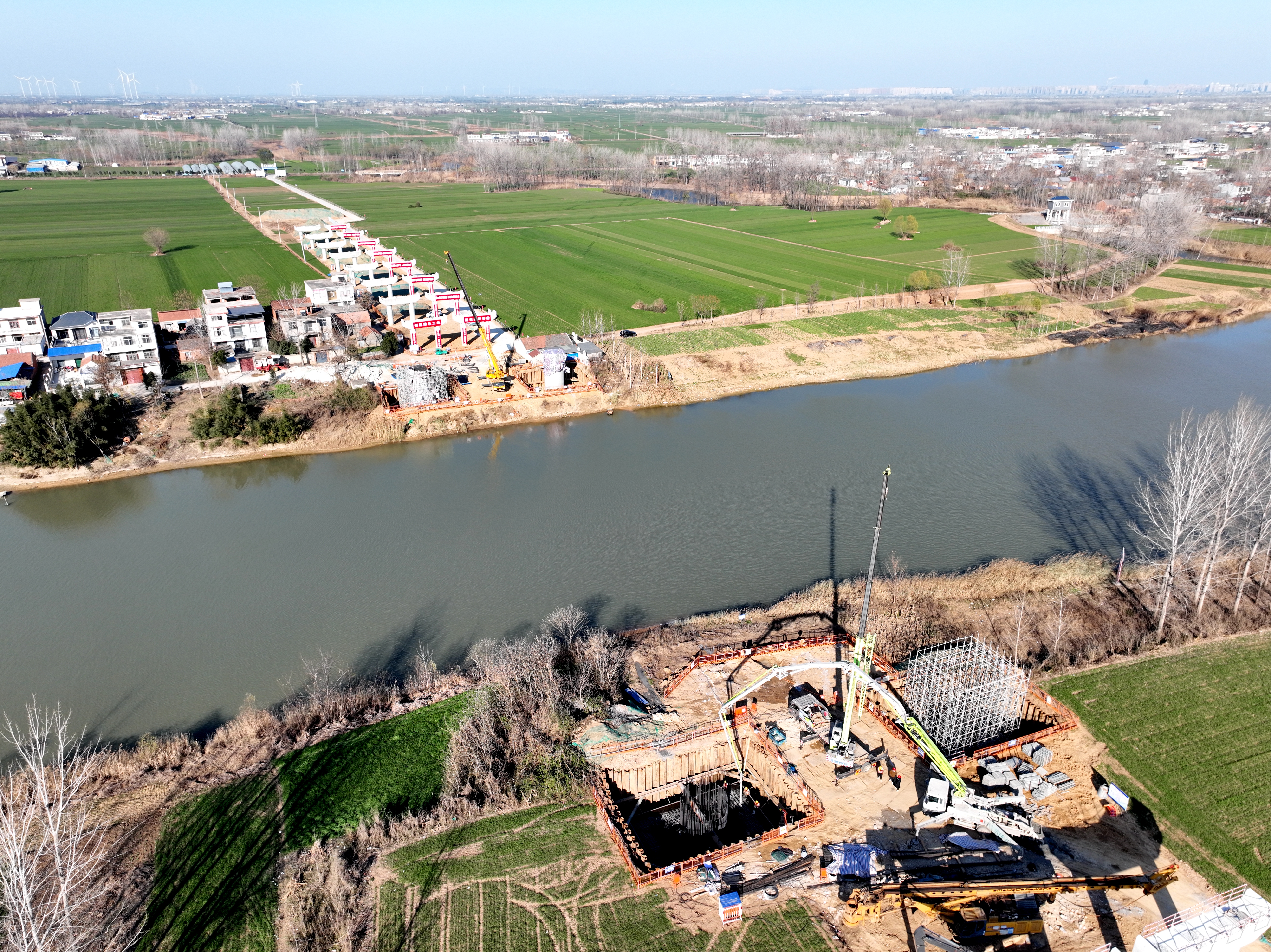 【路橋“競(jìng)”行時(shí)】S235濉唐路三期項(xiàng)目澮河大橋主墩承臺(tái)澆筑完成