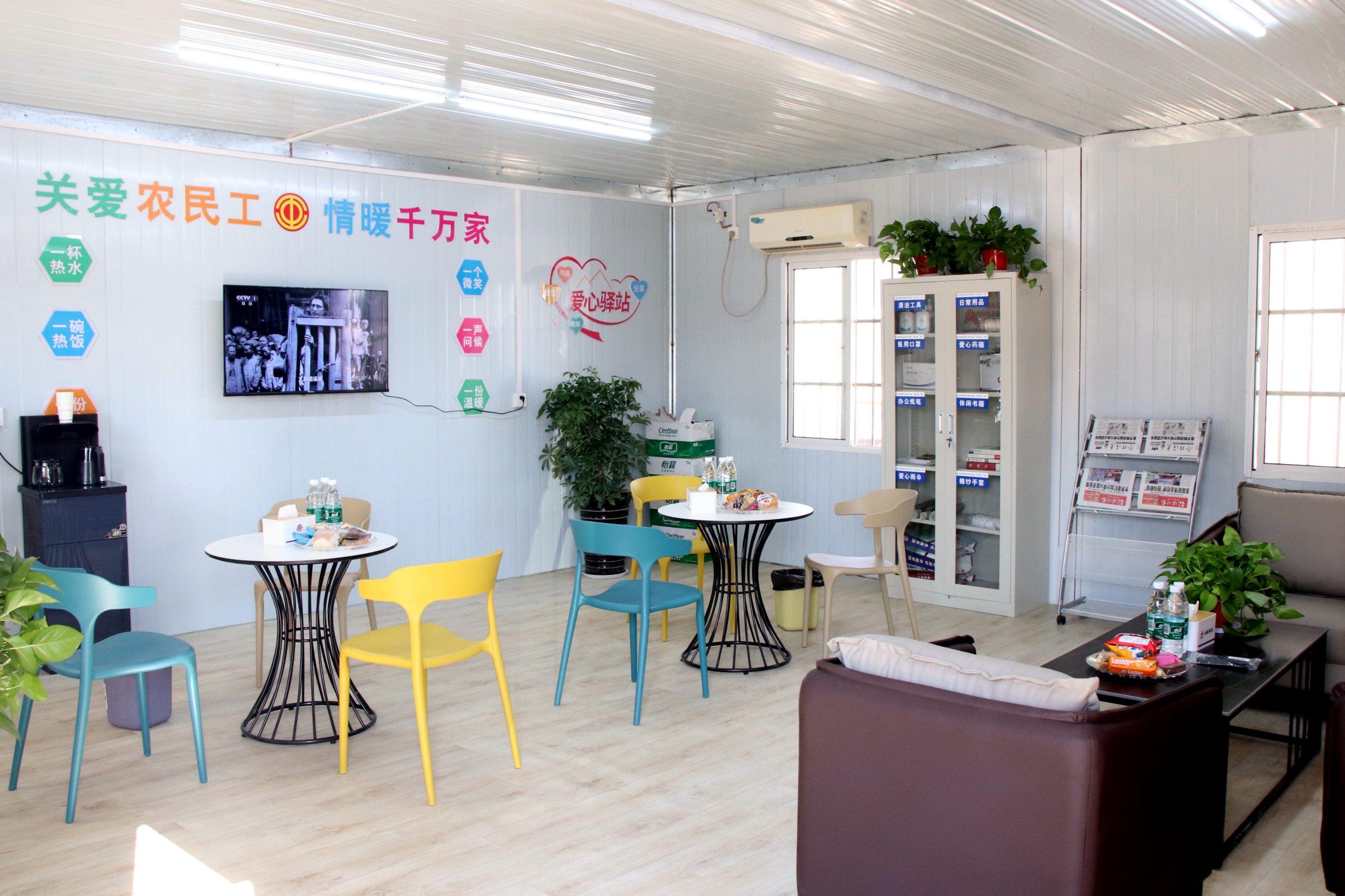 項(xiàng)目工會驛站自建立以來,始終秉持著“關(guān)愛戶外勞動者,打造幸??臻g”的宗旨,不斷完善設(shè)施配備、強(qiáng)化服務(wù)功能。工會驛站內(nèi)配備空調(diào)、電視、充電插座、飲水機(jī)等設(shè)施,急救醫(yī)藥箱、書籍報(bào)刊、愛心雨傘等一應(yīng)俱全,切實(shí)改善了戶外勞動者的工作休息條件,成為了項(xiàng)目勞動者的歇腳地、加油站、連心橋。