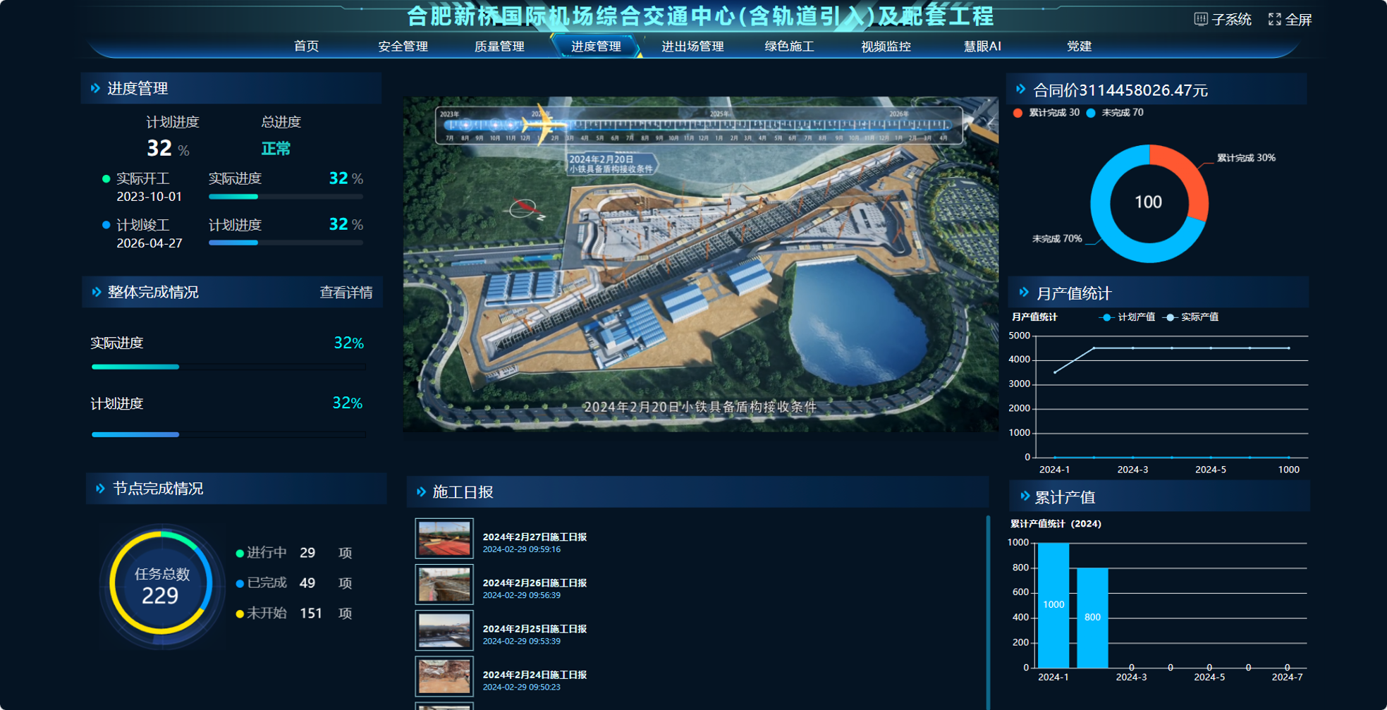 合肥新橋國際機(jī)場GTC主體工程項(xiàng)目是安徽省內(nèi)單體交叉空間最復(fù)雜的綜合交通樞紐工程,采用空地軌一體化設(shè)計(jì)方案,關(guān)鍵線路施工難度大,組織協(xié)調(diào)要求高。公司利用BIM技術(shù)對綜合交通中心進(jìn)行全專業(yè)建模,有效利用BIM深化設(shè)計(jì)、模擬施工組織、分析施工變更、進(jìn)行三維技術(shù)交底,助力施工生產(chǎn),提高施工管理效率,提升工程品質(zhì)。