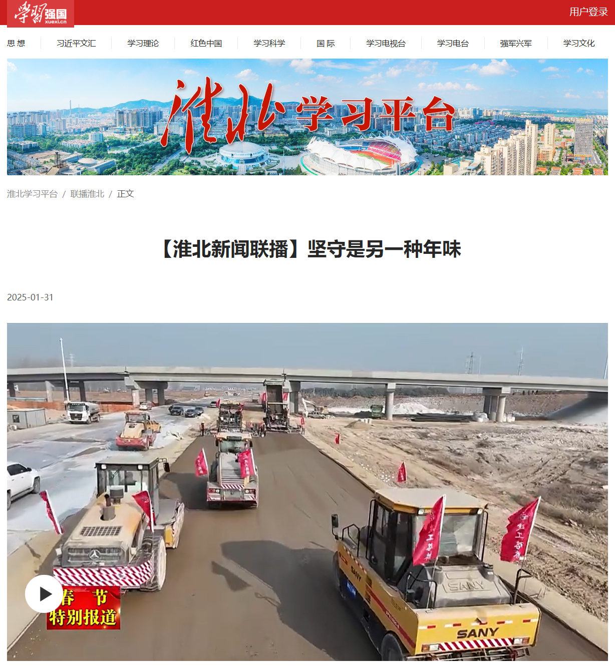 【名媒聚焦】學(xué)習(xí)強(qiáng)國、淮北新聞聯(lián)播關(guān)注報(bào)道徐淮阜高速淮北段項(xiàng)目春節(jié)期間堅(jiān)守項(xiàng)目建設(shè)