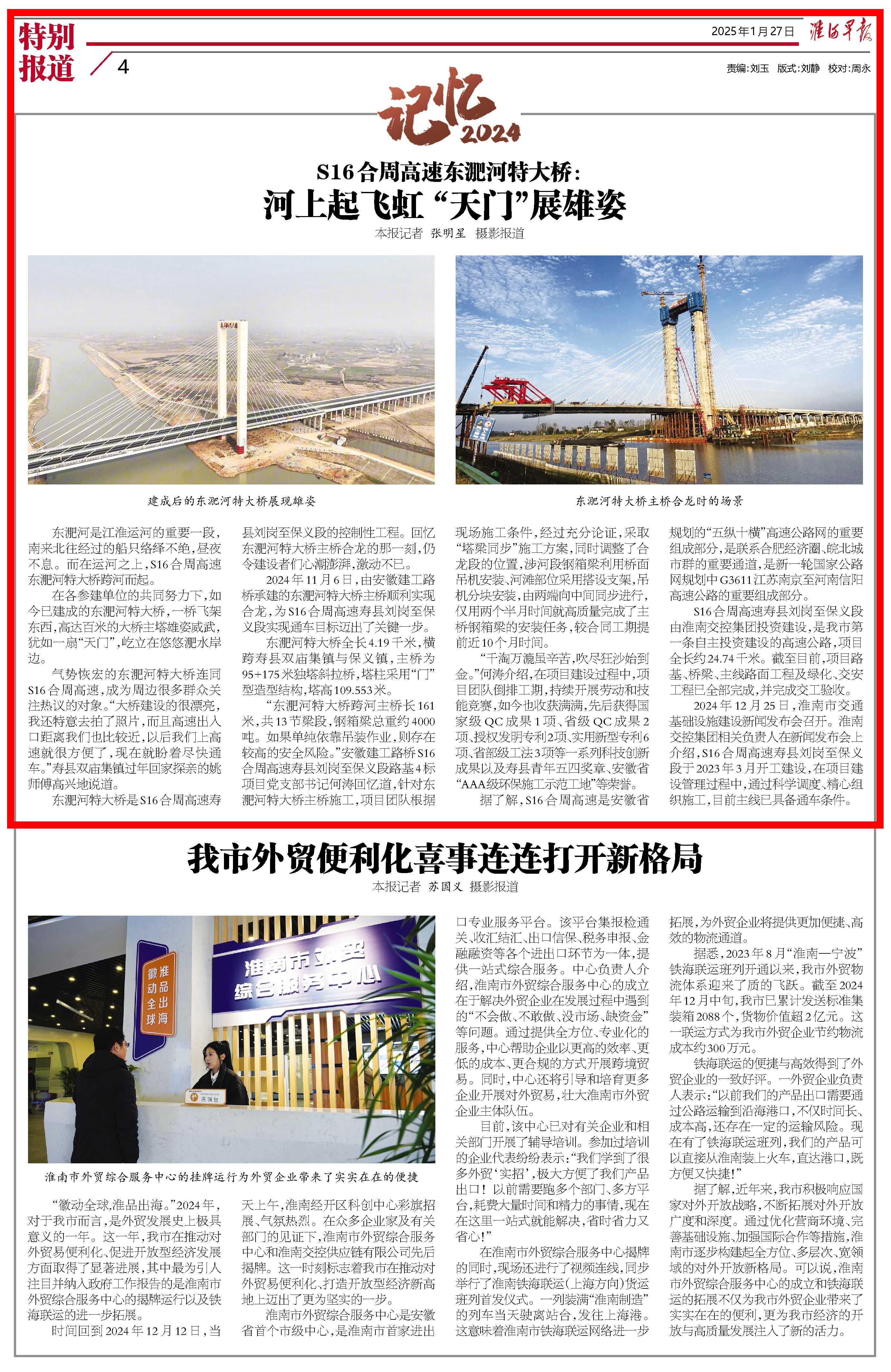【名媒聚焦】淮河早報:S16合周高速東淝河特大橋:河上起飛虹 “天門”展雄姿