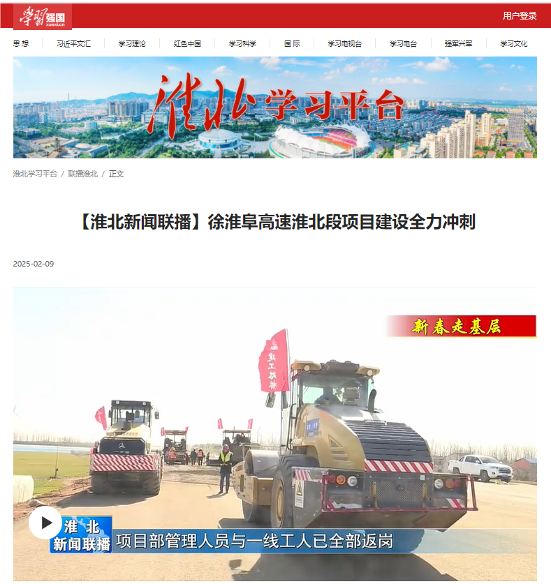 【名媒聚焦】學(xué)習(xí)強(qiáng)國(guó)、淮北新聞聯(lián)播、淮北日?qǐng)?bào):徐淮阜高速淮北段項(xiàng)目全力以“復(fù)”加油干