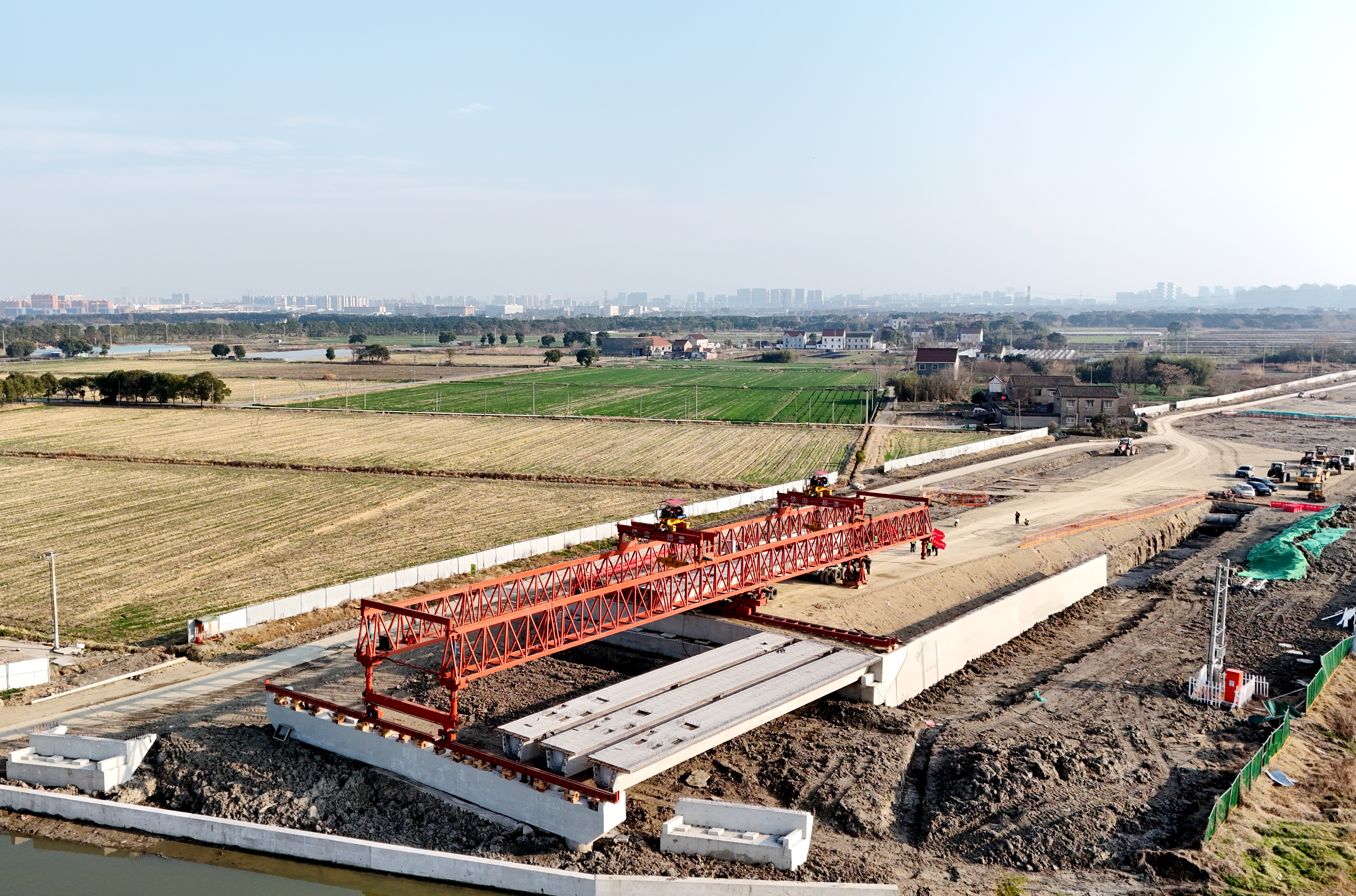 春暉大干正當(dāng)時(shí) | 建工路橋浙江524國(guó)道項(xiàng)目首片預(yù)制箱梁架設(shè)完成