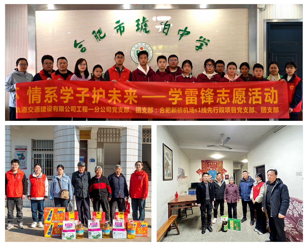 為弘揚(yáng)雷鋒精神,用行動(dòng)傳遞社會(huì)溫情,所屬各項(xiàng)目團(tuán)支部前往敬老院、學(xué)校等地開展慰問活動(dòng)。S334峨山路東延伸新建二期工程項(xiàng)目為周邊村莊貧困老人送去米、油等生活物資;合肥新橋機(jī)場(chǎng)S1線先行段項(xiàng)目走進(jìn)合肥市琥珀中學(xué)龍居山莊校區(qū)開展愛心捐贈(zèng)活動(dòng),為學(xué)校貧困學(xué)子捐贈(zèng)了嶄新校服;S22天天高速YQB2標(biāo)組織開展雷鋒月主題活動(dòng),走進(jìn)老黨員家中,與老黨員們親切交談,關(guān)切詢問他們的身體狀況和生活情況,聆聽他們講述過去的奮斗故事。