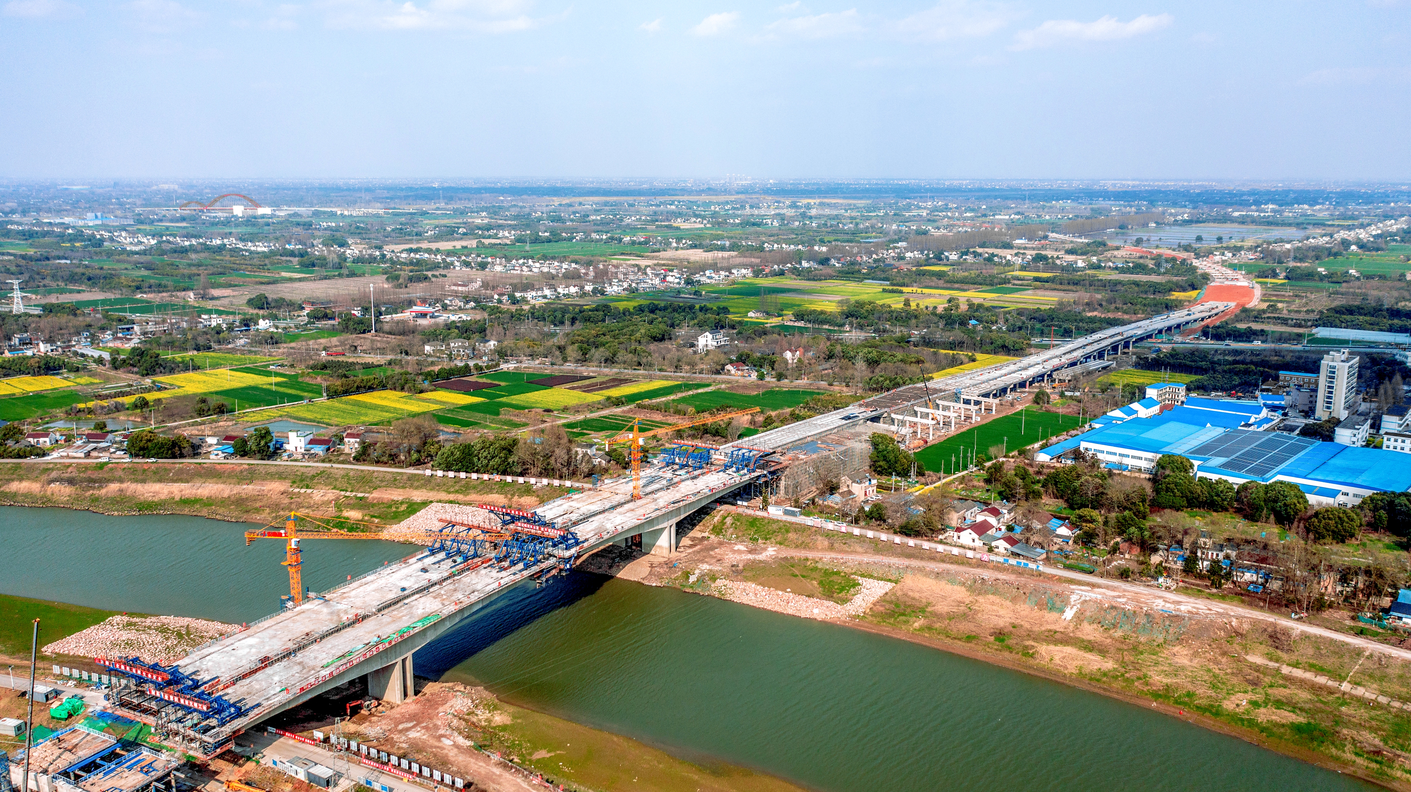 在蕪湖青弋江畔,S334峨山路東延伸新建二期工程青弋江特大橋東引橋左幅已順利貫通,主橋現(xiàn)澆施工緊鑼密鼓推進(jìn),確保如期實(shí)現(xiàn)4月份主橋合龍和年底主線貫通目標(biāo)。