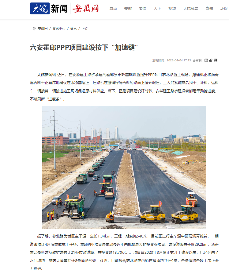 【名媒聚焦】央廣網(wǎng)、安徽日報(bào):安徽建工路橋霍邱PPP項(xiàng)目建設(shè)按下“加速鍵”