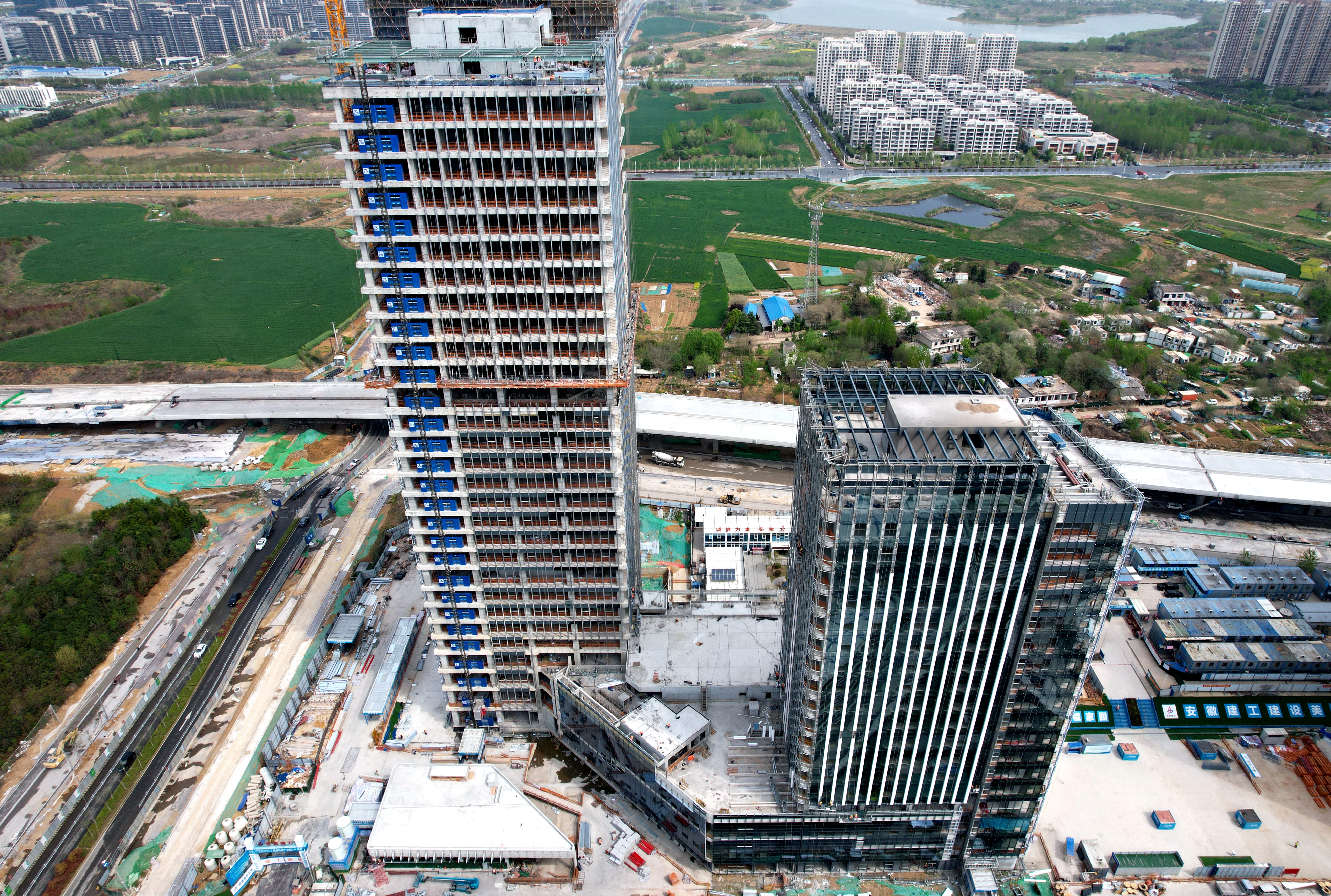 當(dāng)前,項目二期A2、A3樓幕墻玻璃安裝超過90%,A4樓幕墻玻璃安裝超50%。