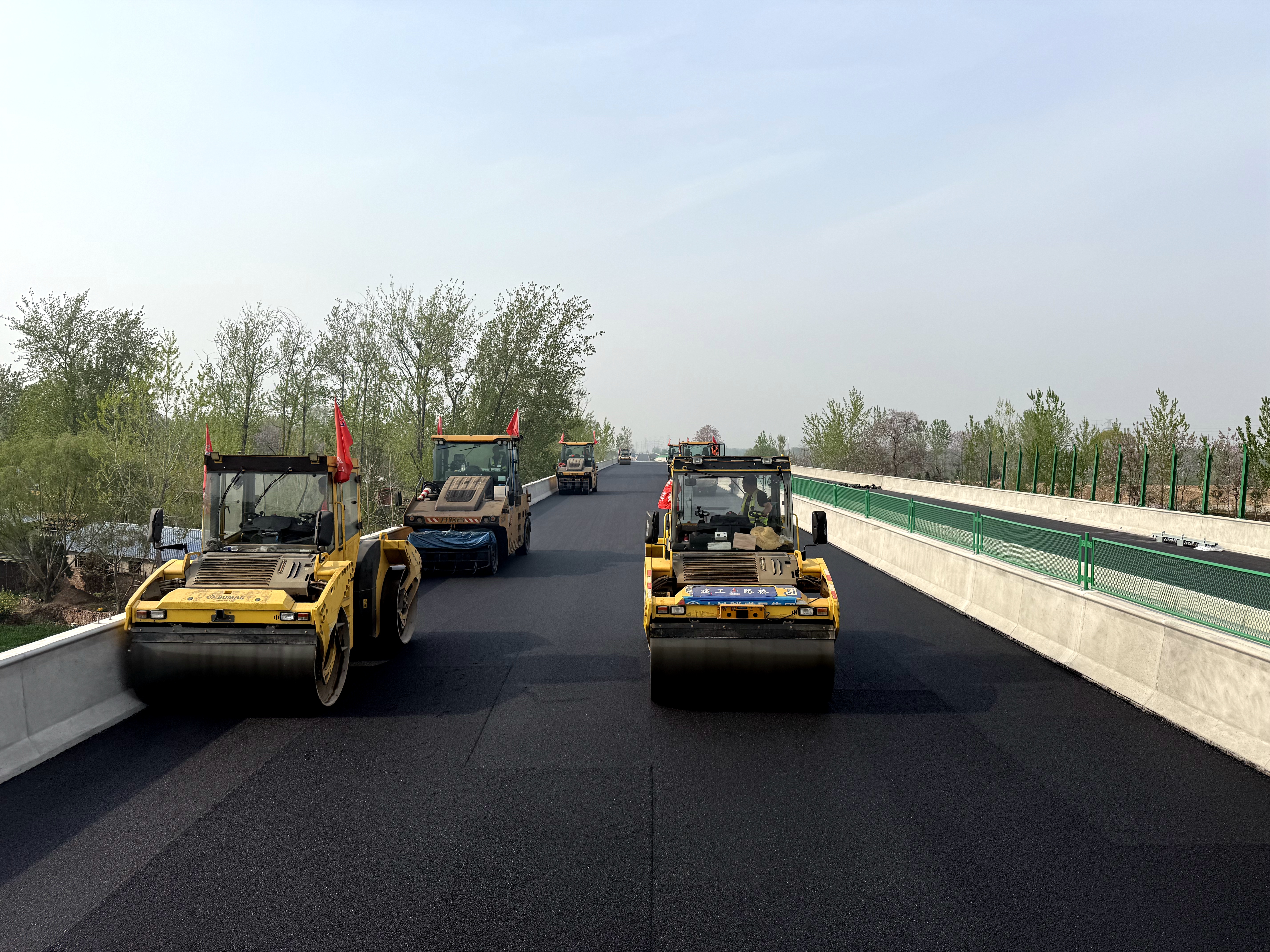 在徐淮阜高速淮北段瀝青施工現(xiàn)場,路面專業(yè)化服務(wù)中心60天完成25萬噸瀝青混合料攤鋪工作,為保證工程質(zhì)量,采用“煤制氣+余熱利用+電磁加熱”加熱綜合應(yīng)用技術(shù)保證瀝青混合料連續(xù)穩(wěn)定生產(chǎn),應(yīng)用機(jī)制砂生產(chǎn)線保證關(guān)鍵材料質(zhì)量穩(wěn)定。三班人員、兩套設(shè)備輪流作業(yè),力爭在4月20日前完成主線貫通,4月25日瀝青面層全線竣工。