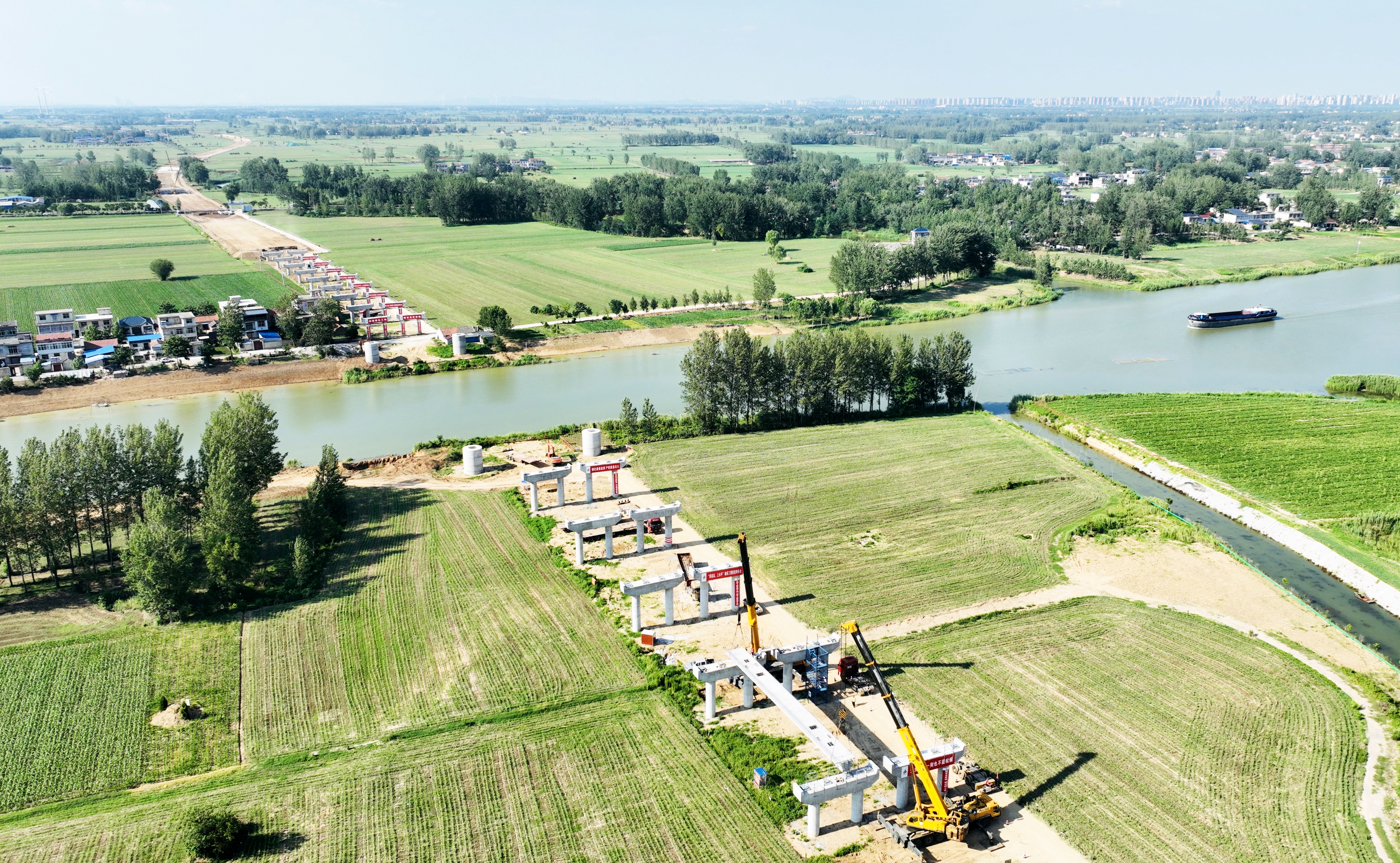 【路橋“競(jìng)”行時(shí)】S235濉唐路三期項(xiàng)目澮河大橋首片箱梁架設(shè)完成