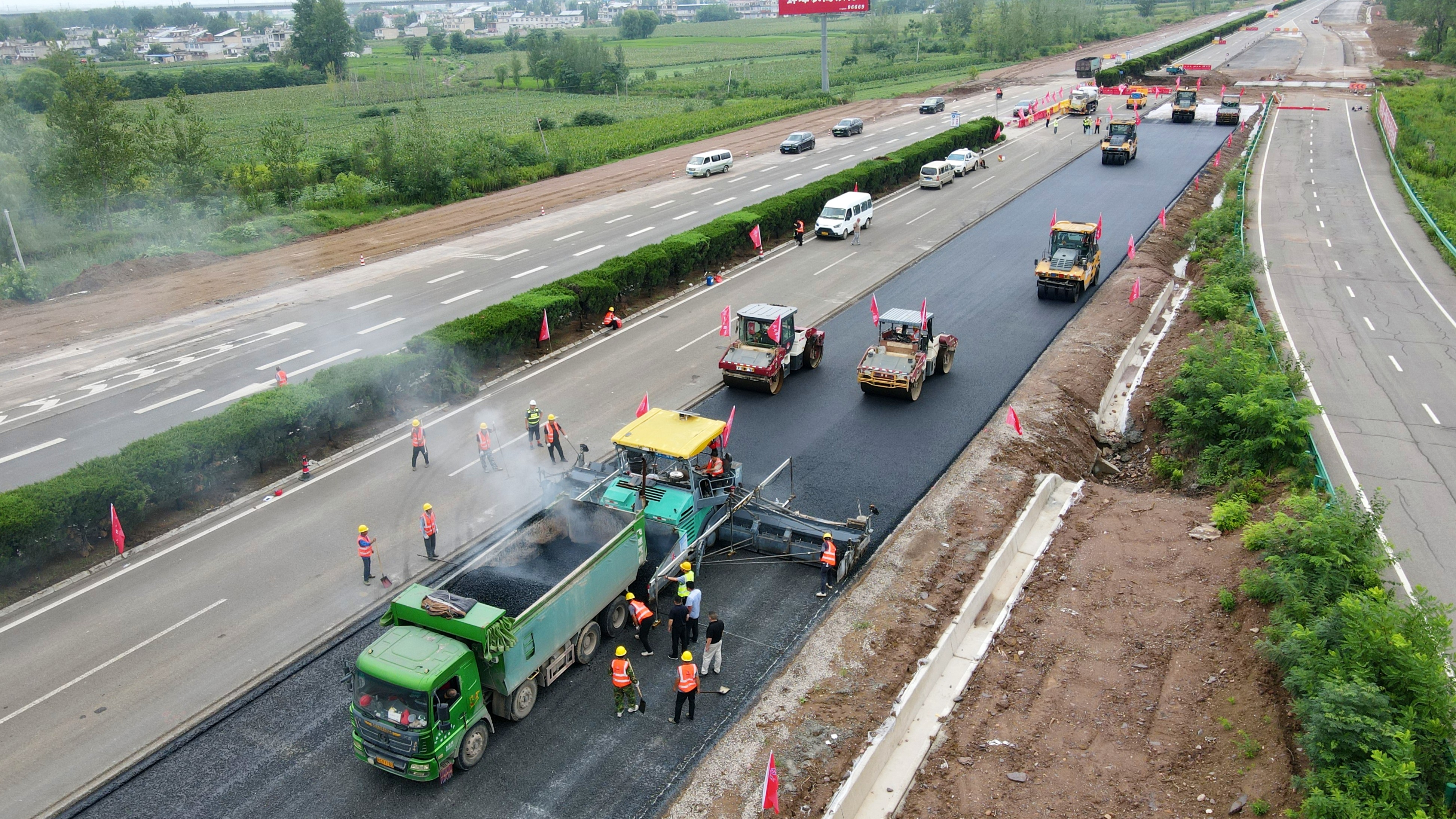 【路橋“競”行時(shí)】G3京臺(tái)高速改擴(kuò)建項(xiàng)目瀝青ATB上基層試驗(yàn)段鋪設(shè)完成