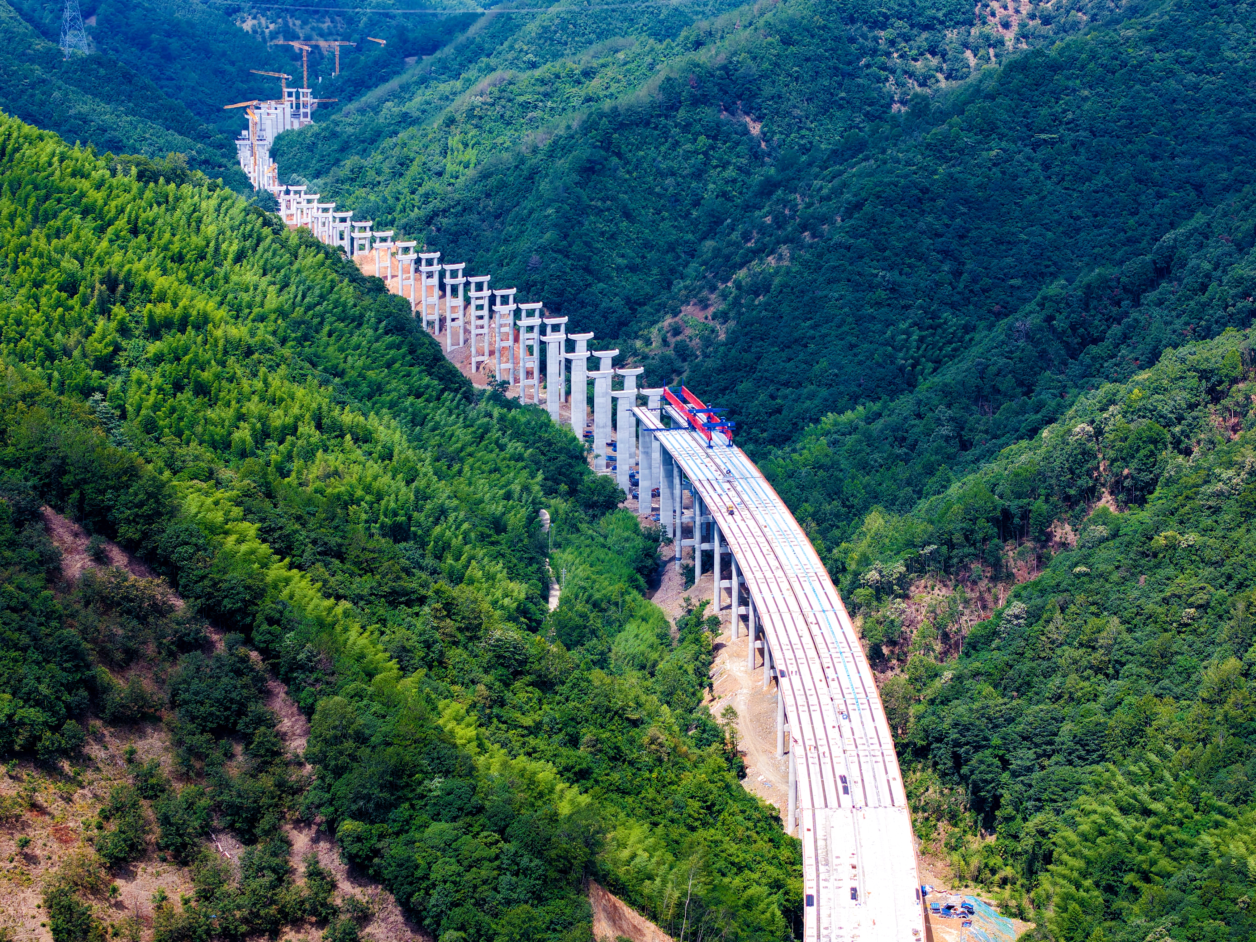 安吉至旌德高速寧國(guó)至旌德段項(xiàng)目起點(diǎn)位于寧國(guó)市,設(shè)胡樂樞紐與溧寧高速銜接,路線向西延伸,終于旌德縣蔡家橋鎮(zhèn)接入S11蕪黃高速,全長(zhǎng)約32公里。該項(xiàng)目作為促進(jìn)“大黃山”地區(qū)與滬蘇浙城市群互聯(lián)互通的重要通道,建成通車后,旌德至杭州的車程將縮短至2小時(shí),大幅提升跨省出行效率。由安徽建工路橋承建的寧?kù)焊咚俾坊?標(biāo),包含特大橋1座、大橋3座、樞紐互通1處及短隧道1座。
